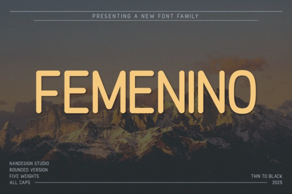 Femenino Rounded Font is a modern all-caps sans serif font family designed to bring clarity, warmth, and bold personality to your creative projects. With its soft-rounded edges and sleek, geometric construction, this font is both highly legible and aesthetically balanced across five versatile weights: Thin, Light, Regular, Bold, and Black.