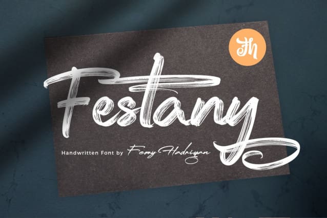 Festany Brush Font is script font with handlettering brush style, with opentype feature include of the font. Suitable for design, element design, wedding, event, t-shirt, logo, badges, sticker, and awesome work, etc…