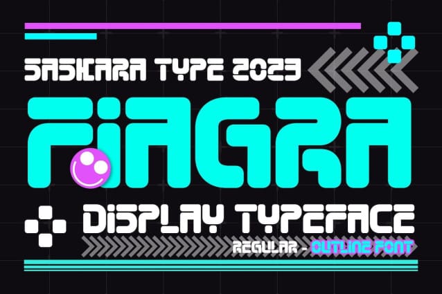 Fiagra Futuristic Font is a cyberpunk font inspired by gaming. This font is very special because it contains two regular fonts and one outline font with a modern touch that is packaged strong and dynamic, Great Font for game logos, labels, flayers, Brochures, Signs, Pubs, Illustration Designs, , Handmade Brands, everything related to modern style, vintage style, etc.