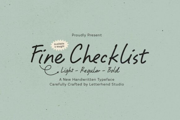 Fine Checklist Handwriting Font is a clean handwritten typeface with a natural, everyday writing feel.The strokes are smooth, slightly textured, and easy to read, giving it a calm and friendly vibe. With light, regular, and bold weights, this font is flexible for notes, planners, packaging, labels, posters, and casual branding. It feels simple, honest, and relaxed—perfect for designs that want a neat handwritten look without feeling messy.