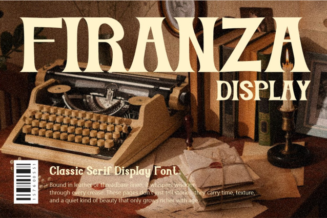Firanza Display Font is a refined serif typeface inspired by the timeless elegance of vintage editorial design. With soft curves, sharp serifs, and graceful proportions, Firanza evokes the sophistication of classic book covers, antique posters, and literary magazines. Each letterform is crafted to mimic the drama of typewriter nostalgia while embracing the clarity of modern digital aesthetics. The font shines in uppercase display use but remains readable across various media formats. Firanza’s distinct presence suits editorial headers, vintage-themed branding, and cinematic titles.