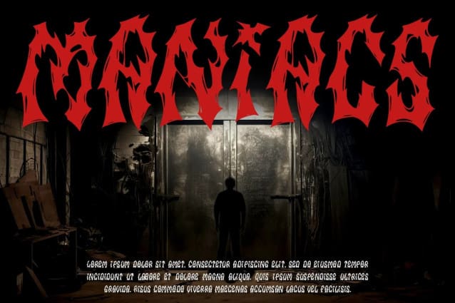 Firehell Display Font – a fiery font inspired by the intensity of death metal. With flames dancing within each letter, this font is tailor-made for death metal, black metal, gothic, horror, and other heavy music genres. The sharp, angular design adds a touch of darkness, making it the perfect visual companion for bands seeking a fierce and impactful typographic identity. Unleash the power of Fire Hell to set your artwork ablaze and embody the relentless spirit of heavy music. Ignite the darkness with this visually striking font!