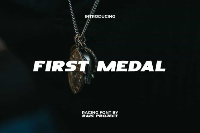 First Medal Font is a basic stylish display racing font, created by RaisProject. This font has bold and curve letter characters so it can make your design stand out. It will be good for any designs, such as advertisement, brand image, custom design, invitation, label, marketing material, poster, product packaging, quotes, signage, website page, and more!