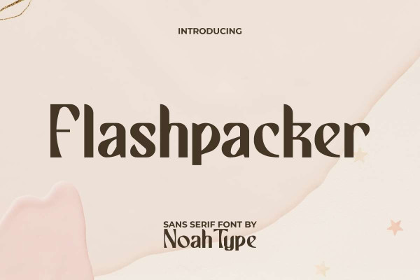 Flashpacker Font is a uniquely fancy display font designed by NoahType. This font has unique curved lines on its edge of letters that will make your designs more interesting! It would be perfect choice for many industries, such as accessories, advertisement, beauty product, café, fashion, furniture, handicrafts, printing, publishing, restaurant, spa and salon, and more!