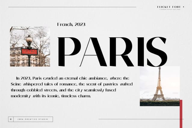 Flicket Display Font is a contemporary display serif font that seamlessly blends sophistication with a touch of whimsy, making it an ideal choice for modern design projects. With its clean lines and subtle flourishes, Flicket exudes a timeless elegance that captures attention while maintaining readability.