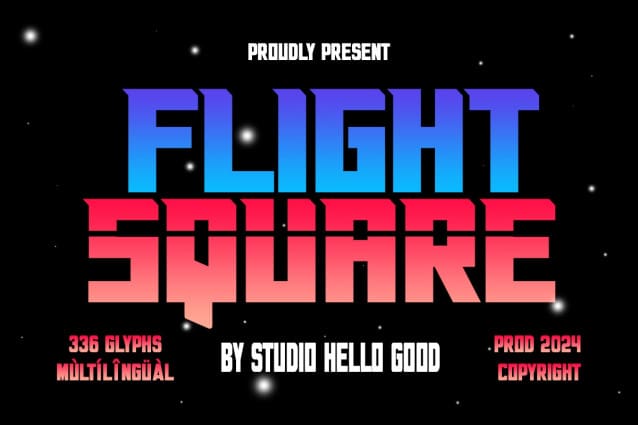 Flight Square Font is a futuristic font inspired by the visual of technology that is found in sports logos, techno design, Sci-Fi movies, games, and gadgets. It is perfect for logos, labels, posters, packaging, books, movies, presentations, games, and much more!