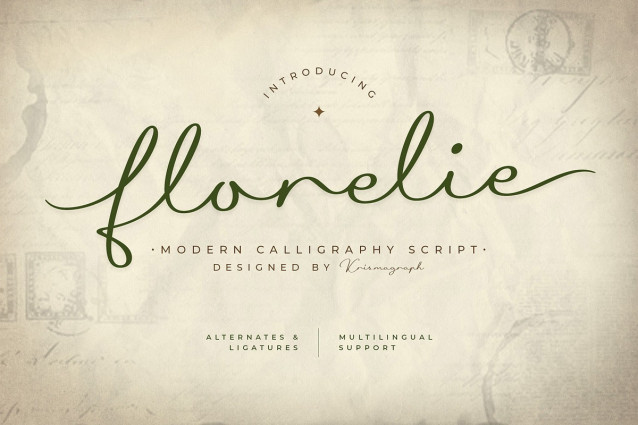 Every letter in Florelie was carefully crafted to deliver both beauty and readability. The font includes alternates and ligatures for creating unique combinations, allowing your design to feel more personal and sophisticated. With its multilingual support and graceful aesthetic, Florelie is a perfect choice for designers seeking a refined and versatile script font.