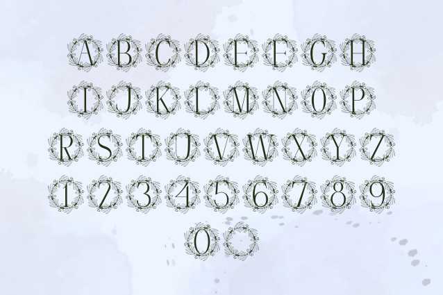 Florena Font is a refined serif monogram font featuring graceful uppercase letters paired with soft floral illustrations. Inspired by classic botanical beauty, this font brings timeless charm and feminine elegance to any design—perfect for weddings, Cricut projects, personalized branding, and seasonal stationery.