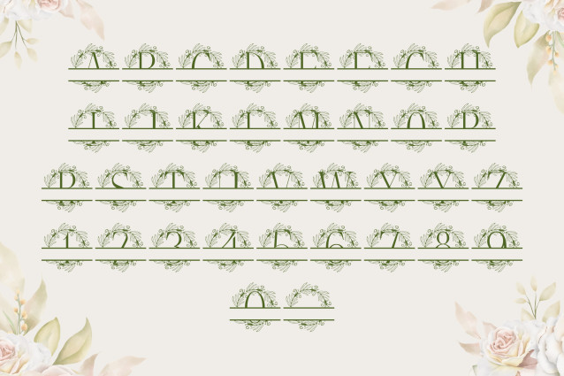 Florena Split Font is a sophisticated serif split monogram font that features uppercase initials with a clean horizontal divide—perfect for adding names, words, or personalized messages. Paired with delicate floral illustrations, it brings timeless romance and botanical charm to every design, ideal for Cricut projects, weddings, and feminine branding.