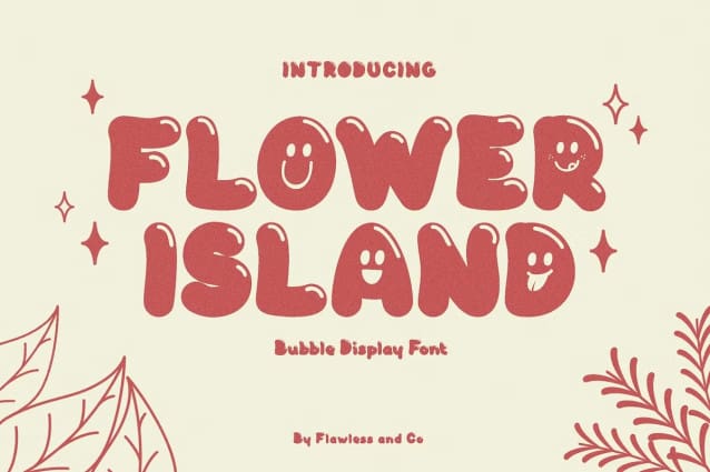 Flower Island Font – A Playful Bubble Display Font. Immerse yourself in the whimsical world of “Flower Island,” a delightful bubble display font that adds a touch of fun and playfulness to your designs. With its rounded letterforms and cheerful demeanor, FlowerIsland is the perfect choice for projects that require a burst of creativity and charm.