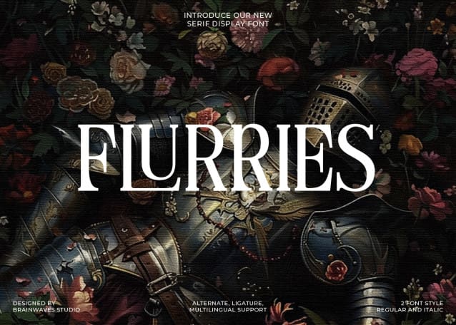 Flurries Font is a modern serif font that strikes the perfect balance between boldness and elegance. Whether you’re designing for luxury brands, creating standout headlines, or adding a unique touch to your logos, Flurries has you covered.