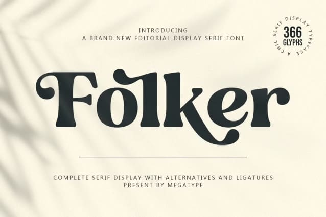 Folker Serif Font is a brand new editorial display serif font. With a modern, classy, fun, unique and versatile style. It looks amazing at display size and is easy to read in text size. This font also has lots of unique alternatives and binders that will make for stunning design projects.