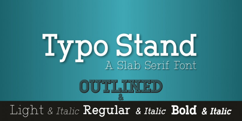 Typo Stand Slab Serif Font by StudioTypo 14,662 downloads Found in: Slab Serif Fonts, Style / Aesthetic Fonts Typo Stand Slab Serif Font