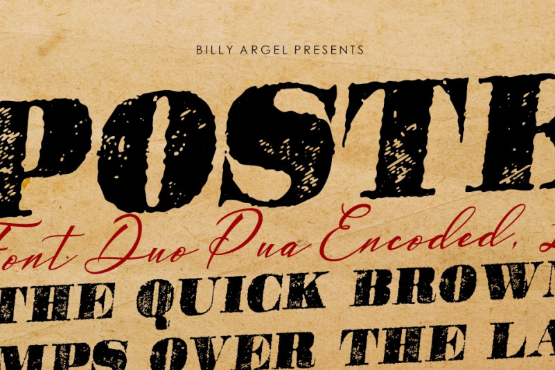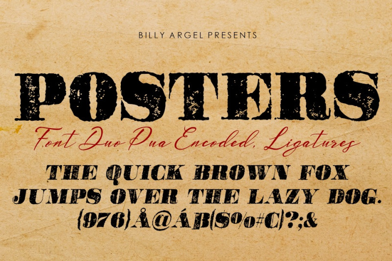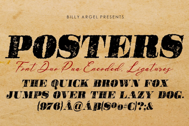 Posters Display Font by Billy Argel Fonts 11,546 downloads Found in: Display Fonts, Retro / Vintage Fonts, Serif Fonts Posters Display Font