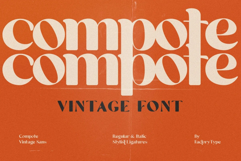 Compote Display Font by FactoryType 10,401 downloads Found in: Display Fonts, Retro / Vintage Fonts Compote Display Font