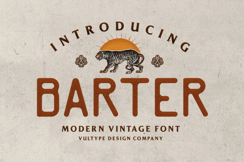 Barter Vintage Font by Vultype Co. 11,008 downloads Found in: Display Fonts, Retro / Vintage Fonts Barter Vintage Font