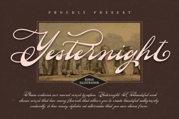 Yesternight Script Font by Letterhend Studio 9,840 downloads Found in: Retro / Vintage Fonts, Script Fonts Yesternight Script Font