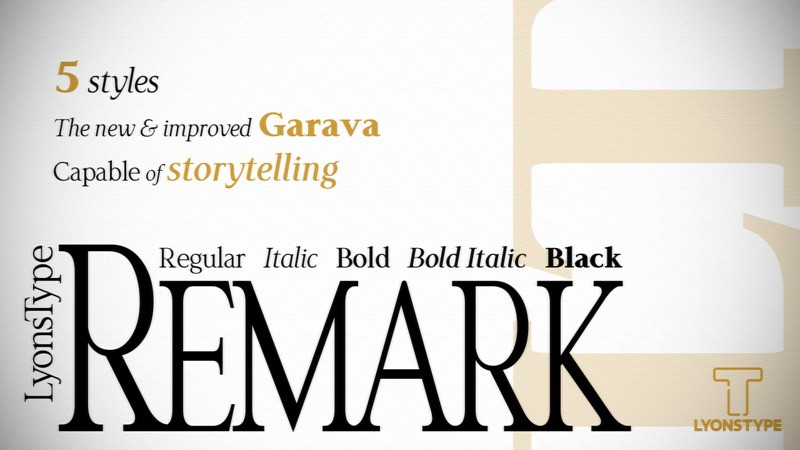 LT Remark Serif Font by LyonsType 15,864 downloads Found in: Serif Fonts, Style / Aesthetic Fonts LT Remark Serif Font