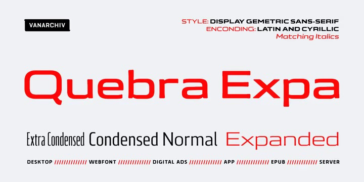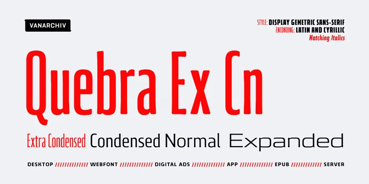Quebra Ex Condensed Display Font by Vanarchiv 15,329 downloads Found in: Display Fonts, Sans Serif Fonts Quebra Ex Condensed Displ...