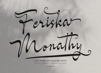 Feriska Monathy Font by Denustudios 5,595 downloads Found in: Calligraphy Fonts, Retro / Vintage Fonts, Script Fonts Feriska Monathy Font