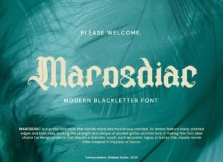 Marosdiac Blackletter Font by Dhabee Studio 6,409 downloads Found in: Blackletter / Gothic Fonts Marosdiac Blackletter Font