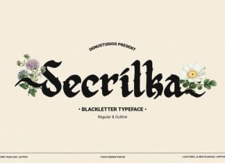 Secrilka Blackletter Font by Denustudios 6,466 downloads Found in: Blackletter / Gothic Fonts Secrilka Blackletter Font