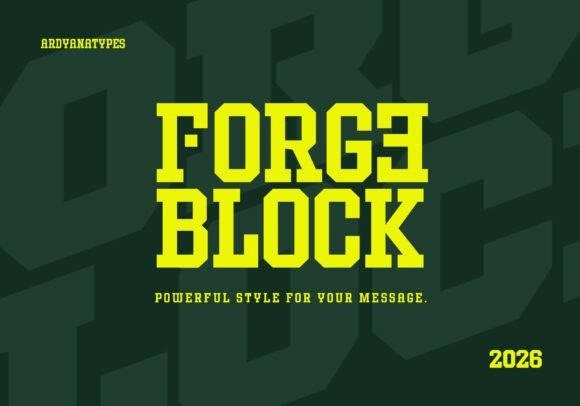 Built for designers who need typography that speaks loudly, Forge Block is perfect for headlines, posters, branding, sports graphics, esports, technology projects, product packaging, and digital promotions.
