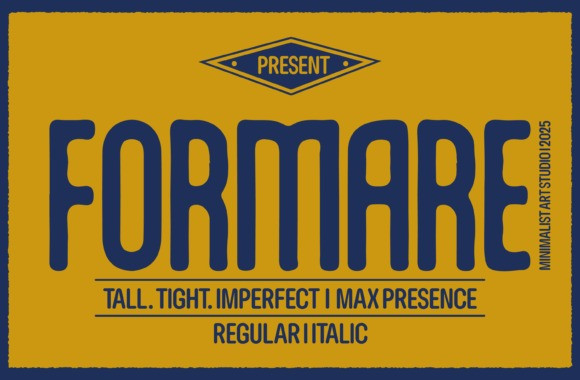 Formare Font is a bold and expressive display font designed to make a strong visual statement.With its tall proportions, soft imperfections, and confident presence, Formare blends retro inspiration with modern character, making it ideal for brands that want to stand out.