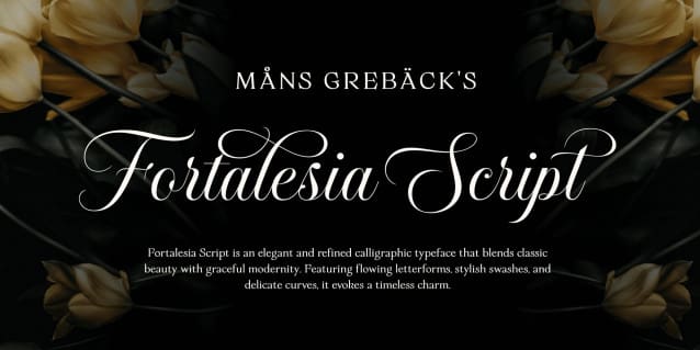 Fortalesia Script Font is a flourish-rich calligraphy typeface, designed with elegance and flair. It merges traditional handwriting with luxurious curves, each stroke crafted to enhance the drama and movement of the lettering. The capital letters sweep into wide, expressive loops, while the lowercase maintains classic balance with intricate swashes that create a strong rhythm across words.