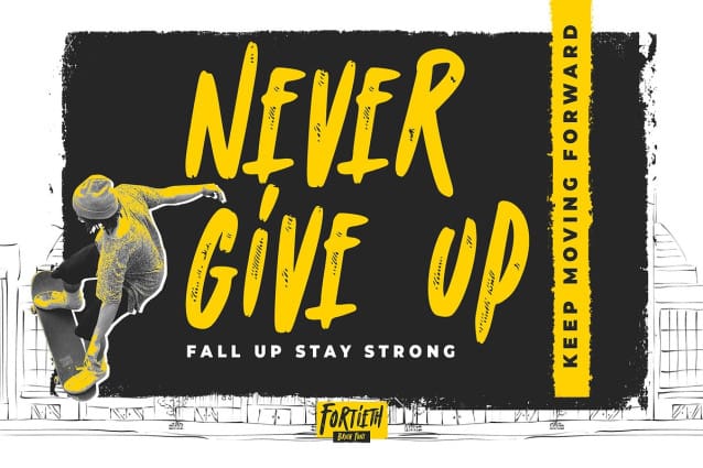 Fortieth Brush Font. This is a Textured Natural Style and classy style with a clear style and dramatic movement. This font Fortieth is great for your next creative project such as logos, printed quotes, invitations, cards, product packaging, headers, Logotype, Letterhead, Poster, Design this font is great for your creative projects such as watermark on photography, and perfect for logos & branding, invitation,advertisements,product designs, stationery, wedding designs,label ,product packaging, special events or anything that need handwritting taste. That is has charming, authentic and relaxed characteristic more natural look to your text. You can activate 7 Ligatures and 42 Alternate glyphs OpenType panel.