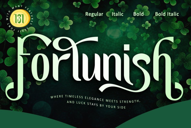 Fortunish-Personal Font a refined serif font family that embodies sophistication and timeless appeal. Designed with precision, Fortunish offers four versatile styles—Regular, Italic, Bold, and Bold Italic—ensuring flexibility for any design project. Its elegant letterforms exude confidence and charm, making it the perfect choice for upscale branding, editorial designs, luxurious packaging, and stylish typography. Featuring PUA encoding, Fortunish provides seamless access to a wide array of unique glyphs, enhancing creative possibilities. Elevate your designs with Fortunish, a font that blends classic beauty with modern versatility.