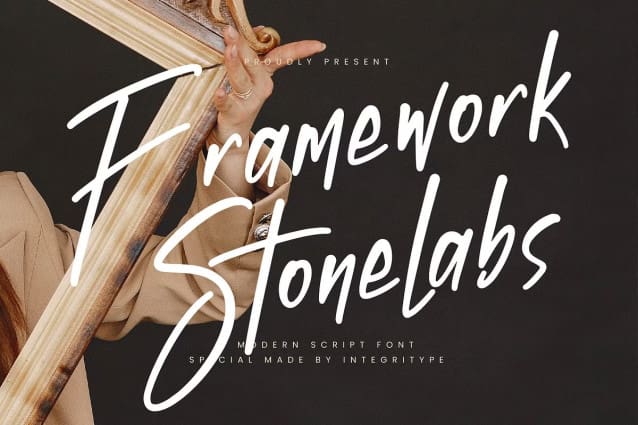 Framework Stonelabs Font – Modern Script Font, from Integritype Studio, perfect for any project like: logos, branding projects, homewares designs, product packaging, mugs, quotes, posters, shopping bags, t-shirts, covers books, business cards, invitation cards, greeting cards, labels, photography, watermarks, special events and all your other luxury projects that require a premium taste.