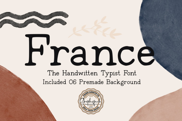 France Slab Serif Font I made a special font this time. This font is inspired by typewriter letters. So, I scratch using pen ink so the authenticity of the hand texture is still awake. I hope you like it. In the file, we also give you a bonus. In the form of 6 Watercolor Backgrounds with colors that are warm now.