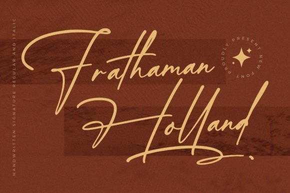 Frathaman Holland Font – Handwritten Signature , from Glorytype Studio, suitable for any projects such as: logos, branding projects, homeware designs, product packaging, mugs, quotes, posters, shopping bags, t-shirts, book covers, name card, invitation cards, greeting cards, label, photography, watermark, special events, and all your other lovely projects that need a beautiful script taste.