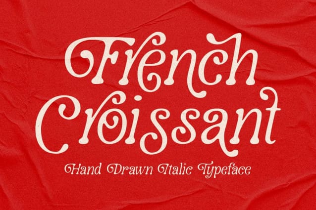 French Croissant Font, presenting a new, very passionate typeface. Yes, this font is hand-drawn with an italic style and is characteristic of various types of letter styles. Very suitable for branding designs, logos, posters, merchandise and more. Grab it to start your Type Game!