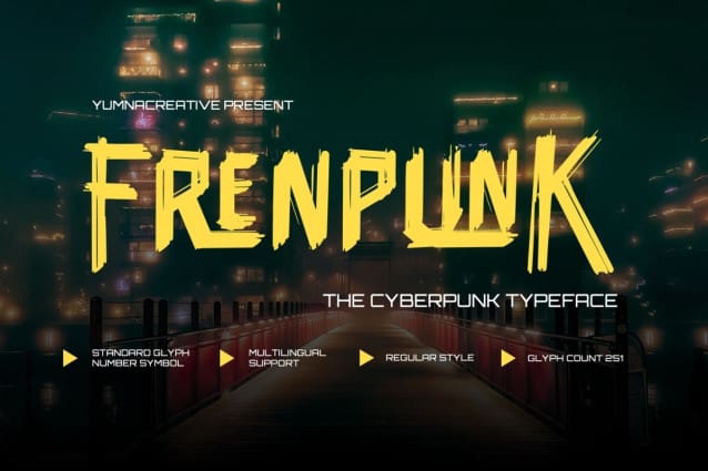 FrenpunK Cyberpunk Font is a mix of French culture and cyberpunk style. It combines futuristic technology, neon lights, and advanced cities with French influences like fashion, art, and language. The world is high-tech but also gritty, with a sense of rebellion and cool, streetwise characters living in a fast-paced, digital world.