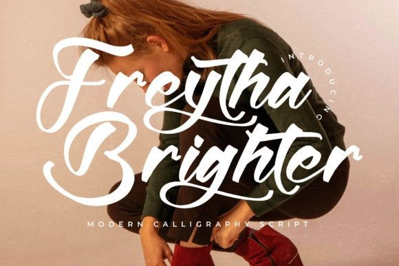 Freytha Brighter Font – Modern Calligraphy Script , from Glorytype Studio, suitable for any projects such as: logos, branding projects, homeware designs, product packaging, mugs, quotes, posters, shopping bags, t-shirts, book covers, name card, invitation cards, greeting cards, label, photography, watermark, special events, and all your other lovely projects that need a beautiful script taste.