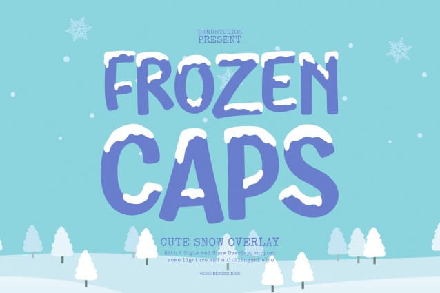 This font is made for personal use. Get the full version of the fonts if you want to use it for commercial purposes by purchasing the licenses here: https://denustudios.com/frozen-caps-cute-snow-overlay/