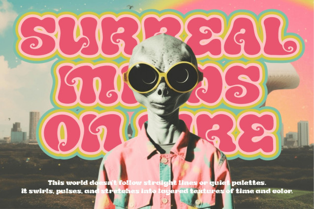 Funkadelic Font the wild spirit of the 70s into modern design. Each character bursts with bold, curvy swirls, inspired by the groovy aesthetics of retro posters, album covers, and vintage magazines. The rounded, fluid letterforms combine a playful personality with a strong visual impact, making them perfect for designs that demand attention. Its psychedelic flow captures the essence of vibrant music festivals, classic hippie culture, and colorful retro art, while still feeling fresh in today’s creative projects.