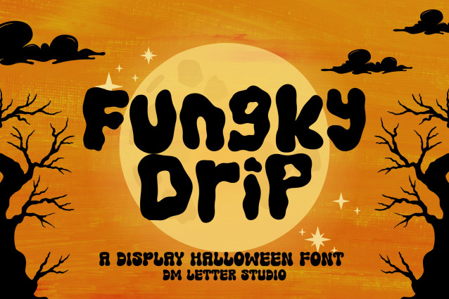 Funky Drip Font is a bold and playful display font with a spooky twist, perfect for Halloween designs and seasonal projects. Its dripping letterforms give your text a creepy yet fun vibe, making it great for posters, invitations, party decor, and themed merchandise.