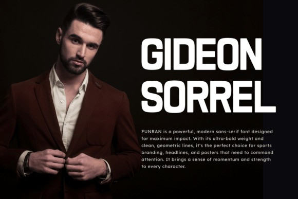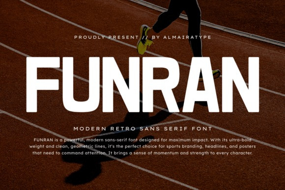 Funran Font is a powerful, modern retro sans serif font designed for maximum impact and high-energy visual storytelling. With its ultra-bold weight and clean, geometric lines, this typeface is the perfect choice for sports branding, competitive racing graphics, and bold event posters that need to command attention. It brings a unique sense of momentum and strength to every character, blending classic athletic aesthetics with a contemporary, sleek finish. Whether you are creating dynamic social media content, professional team logos, or standout apparel designs, Funran provides a solid and reliable typographic foundation. Its versatile nature makes it equally suitable for cinematic titles, fitness motivation quotes, and innovative packaging projects. The balanced proportions ensure excellent legibility across both digital and print platforms, allowing your creative vision to shine with professional clarity. Elevate your design projects with the unstoppable energy and commanding presence of the Funran typeface.