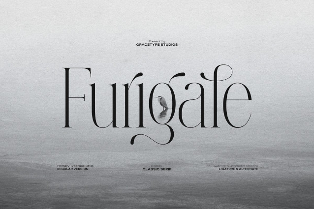 Furigale Font | Classic Serif, from Gracetypestudio, suitable for any projects such as: logos, branding projects, homeware designs, product packaging, mugs, quotes, posters, shopping bags, t-shirts, book covers, name card, invitation cards, greeting cards, label, photography, watermark, special events, and all your other lovely projects that need a Serif taste.