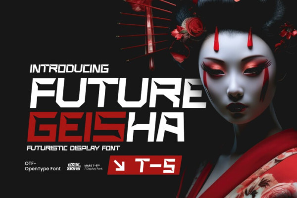 Future Geisha Font, It has a distinctive futuristic design. Use it to create time-traveling movie posters for futuristic or extraterrestrial productions. Fantastic for creating unique cards and artwork for science fiction fans.This font was created to be used for universal events like game competitions, wall advertisements, and poster designs. Your design can look better with a simple combination. Purchase it right away to enjoy using it ahead of the competition.