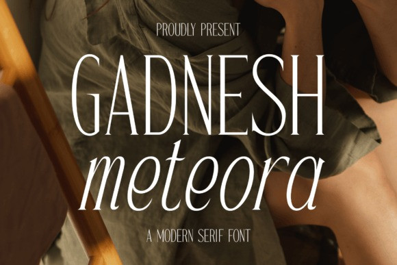 Gadnesh Meteora Typeface , created by Storytype, A serif modern and classic typeface that has own unique style & modern look. This typeface is perfect for an elegant & luxury logo, book or movie title design, fashion brand, magazine, clothes, lettering, quotes, and so much more.