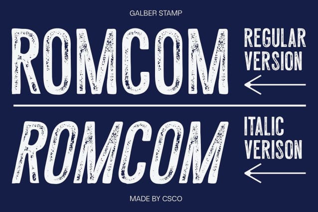 Perfect for Branding, Posters, and More Galber Stamp is ideal for designs that require a distinctive and eye-catching appearance. Its strong, characterful design makes it perfect for applications like branding, posters, and promotional materials that aim to convey a retro or industrial feel. This font’s blend of modern efficiency and vintage texture ensures a memorable and impactful presence in any creative project.