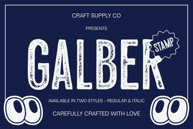 This font is made for personal use. Get the full version of the fonts if you want to use it for commercial purposes by purchasing the licenses here: https://creativemarket.com/craftsupplyco/284128905-Galber-Stamp?u=fontlot123