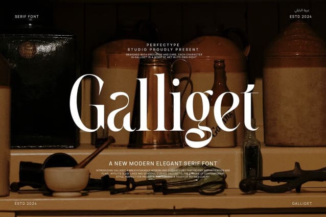 Galliget Font is made for personal use. Get the full version of the fonts if you want to use it for commercial purposes by purchasing the licenses here: https://creativemarket.com/Perfectype/281235310-Galliget-Modern-Serif-Font?u=fontlot123