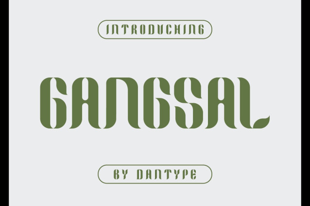 Gangsal Display Font – This font would be perfect for photography, watermarks, social media posts, advertisements, logos & branding, invitations, product design, labels, stationery, product packaging, special events, and other projects.