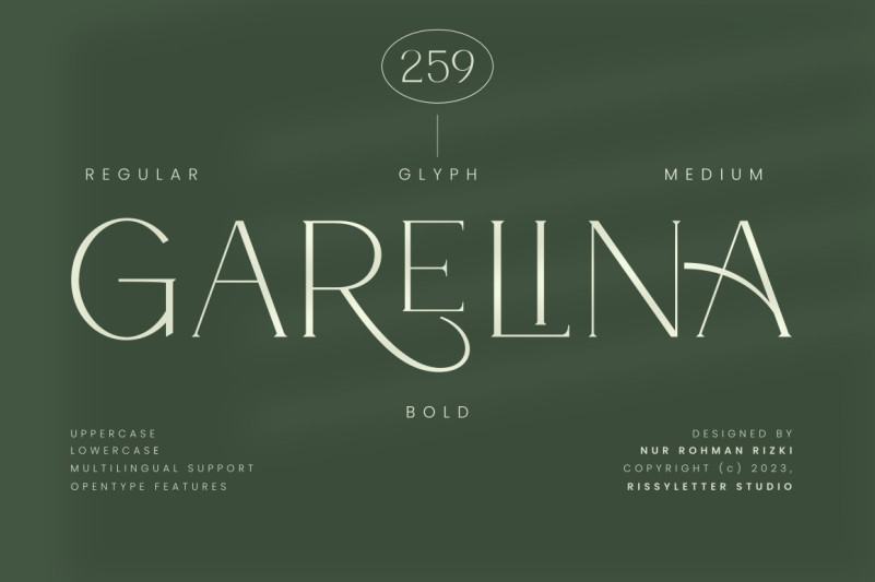 Do not hesitate to try Garelina on your design now. You will be surprised how easy it is to make elegant and luxurious designs with this serif font. Garelina, the elegant and luxurious serif font for your branding needs.