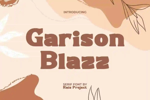 Garison Blazz Font is a playful cute adorable serif font with a bulky shapes by RaisProject. This font has thick and short characters so it has a charming appearance and can be paired with other types of fonts. It will look good on invitation, stationery, poster, custom design, product packaging, quotes, signage, brand image, advertisement, label, marketing material, website page, and more!